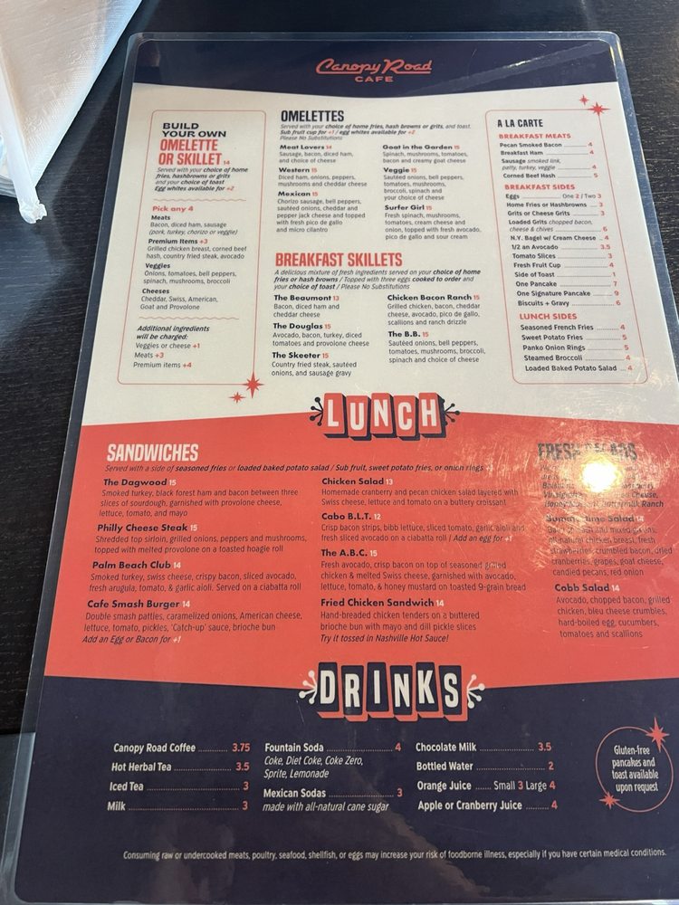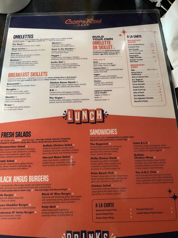 Canopy Road Cafe, a cozy and inviting spot in Jacksonville, FL, is a must-visit for fans of American breakfast and brunch. This cafe not only offers an array of delicious waffles but also has a wide selection of vegan and vegetarian options, making it a great choice for all dietary preferences. Customers rave about the friendly staff, quick service, and generous portion sizes. The atmosphere is casual and trendy, perfect for a relaxed meal with friends or family. The menu features classic breakfast dishes like the canopy road special and the popular seasonal pumpkin pancake. With excellent customer service, a welcoming ambiance, and mouthwatering food, Canopy Road Cafe is a top choice for a satisfying and enjoyable dining experience.
